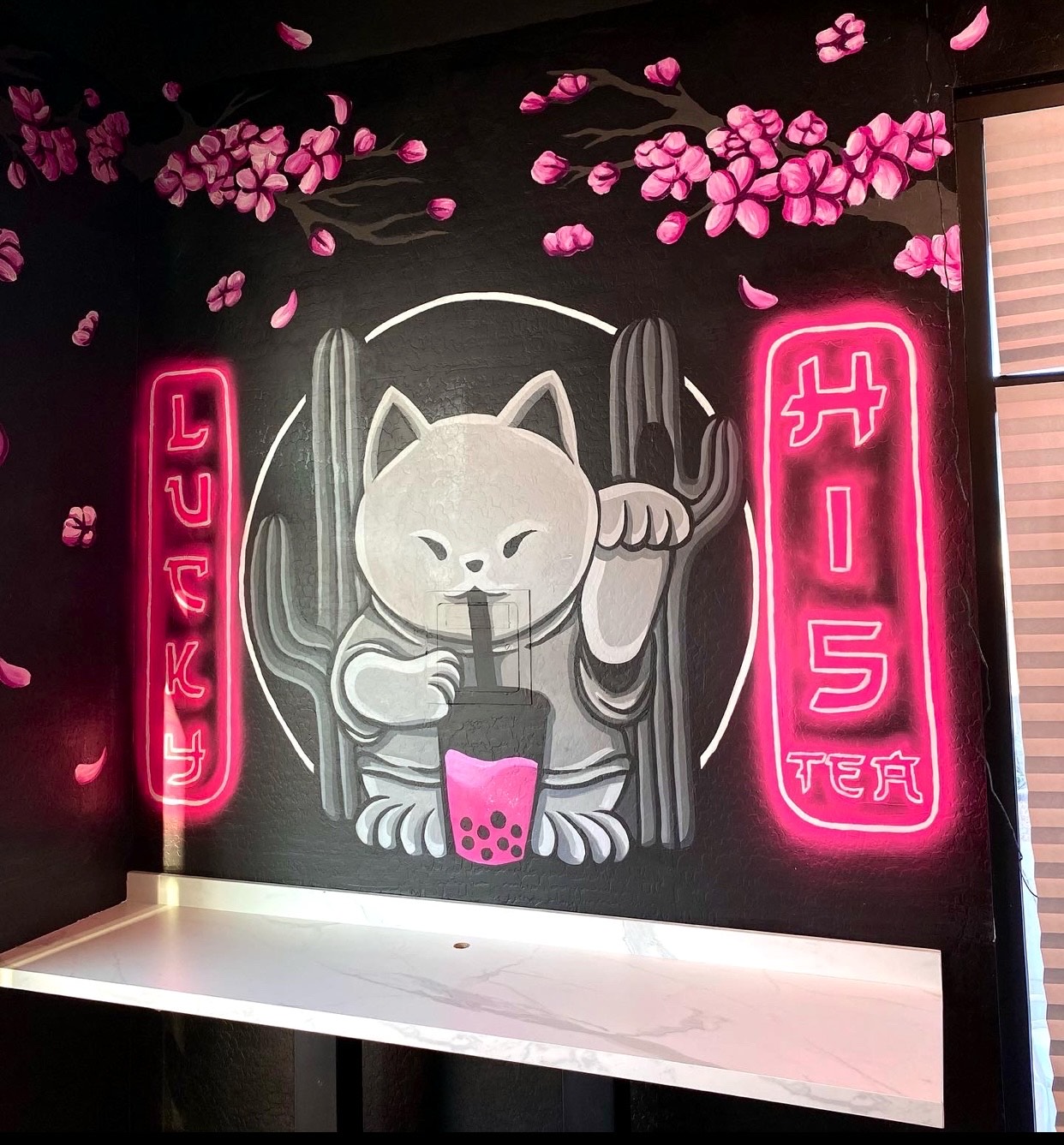 Arizona Inspired Barbershop Mural for Crafted Image Custom Hand-Painted Wall Art With Hidden Local Sports Elements For Crafted Image Barbershop, I designed and hand painted a vibrant Arizona themed mural...